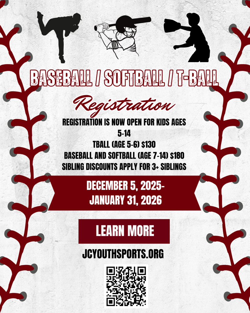 Our Spring Season runs with registration open from December 6 through January 31. T-Ball (ages 5–6) is $130, and Softball (ages 7–14) are $180. Families with three or more siblings receive a discount — the first two register at full price, and every additional sibling is just $80.